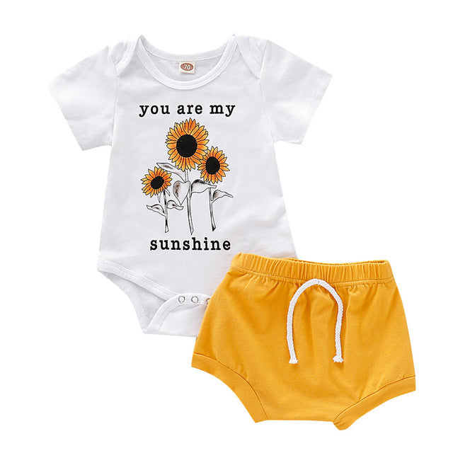 Toddler Girls Clothes Summer New Boy Girls' Clothing Sets Letter Sunflower Romper Casual Tops+ Solid Shorts 2PC Clothes Set